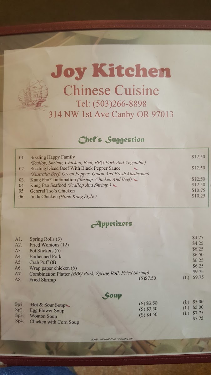 Welcome to Joy Kitchen, your destination for delightful Asian cuisine, located in the heart of Canby, Oregon. At Joy Kitchen, the menu showcases a variety of tantalizing dishes that are both flavorful and affordable. From the gloriously Sweet & Sour Pork to the spice-filled Szechuan Beef, every plate is a celebration of taste, perfectly balanced with fresh ingredients.